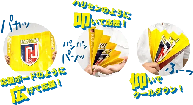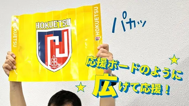 試合前に選手からのメッセージ入りのハリセンを配布!ファンと選手の一体感を高めるプレミアムなグッズにすることができます。