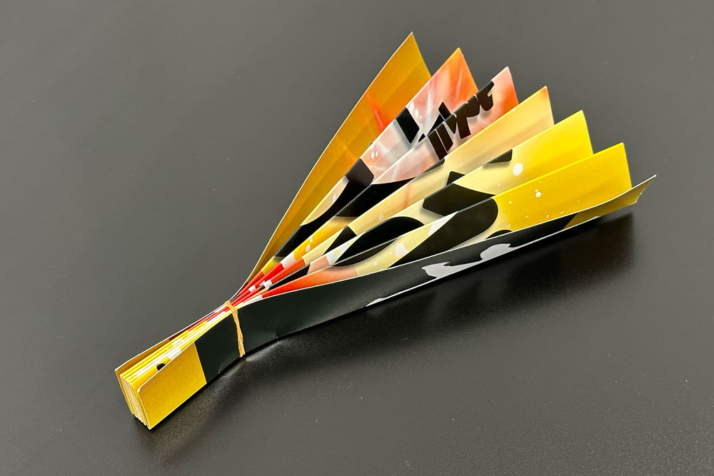 サイズは「小」。ボクシングの試合は他のスポーツと比較すると長時間応援をしないため耐久性はそれほど必要ないのではということで「PP加工」はなし。部数は50部印刷しました。