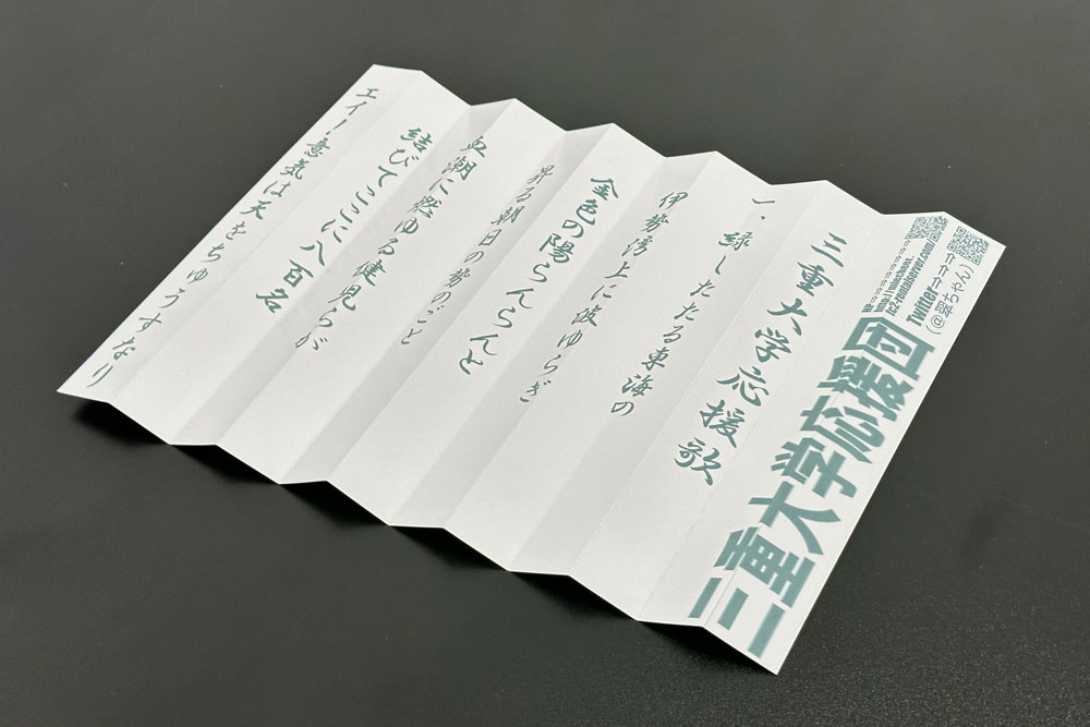 伝統ある三重大学 応援団様からハリセン制作の御依頼をいただきました。片面に応援団歌を印刷し、皆さんで歌い声を合わせて応援も出来るように表現されていました。