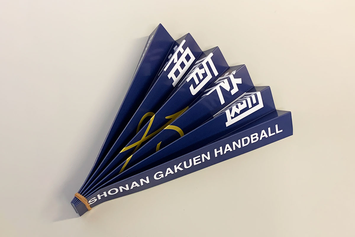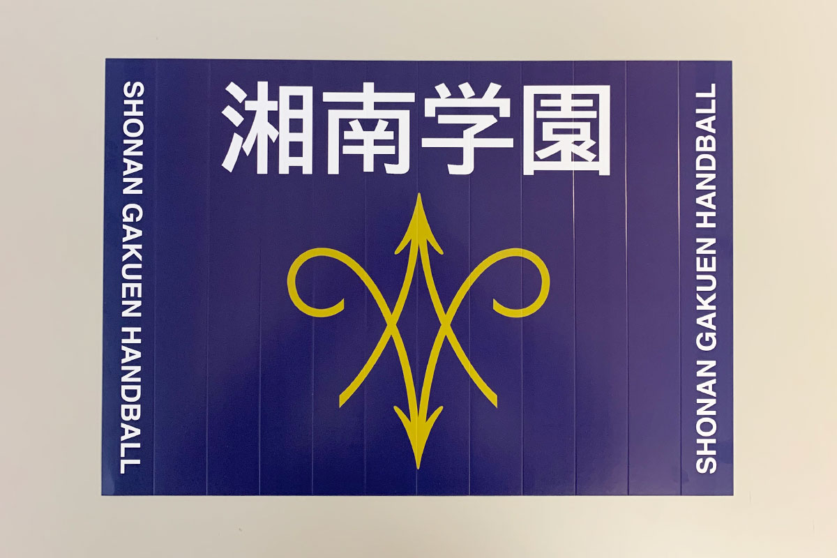 学園名・校章を基本とした両面同デザインにすることにより応援に集中することができるように表現されていました。